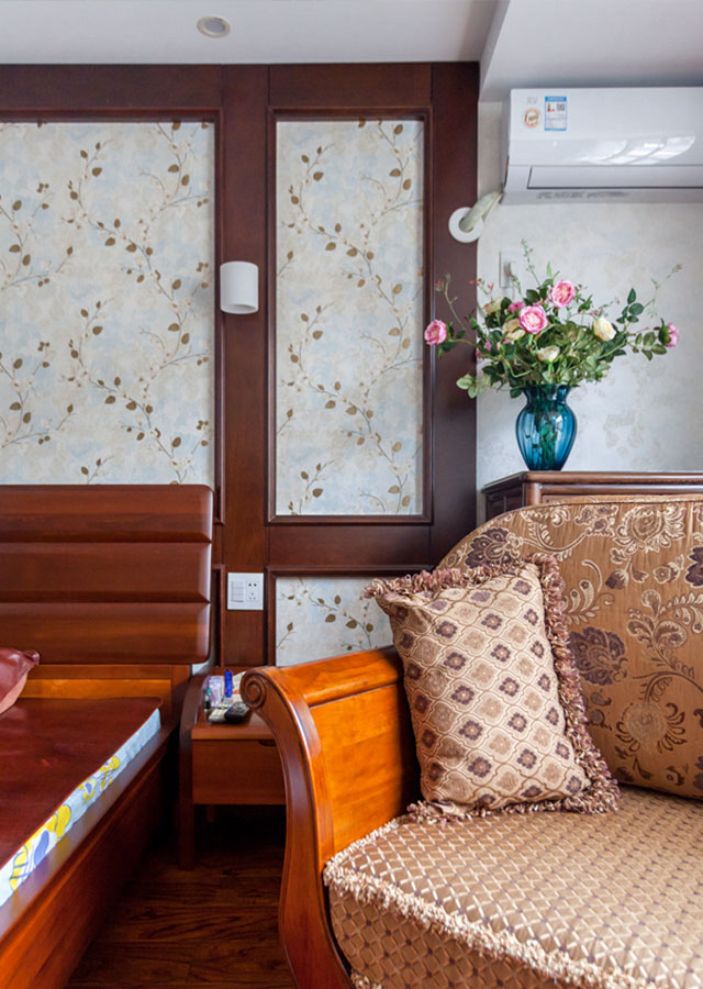 中式屏風做成的護墻與中式刺繡搭配