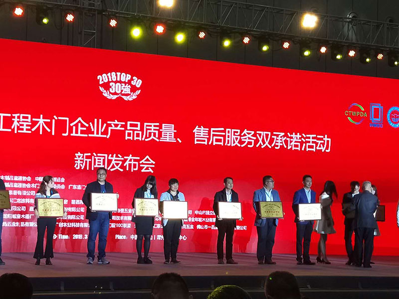 2018中國門窗品牌創(chuàng)新趨勢高峰論壇暨新聞發(fā)布會樹興木業(yè)有限公司榮獲2018全國市場工程木門企業(yè)產(chǎn)品質(zhì)量售后服務(wù)雙承諾活動30強榮譽